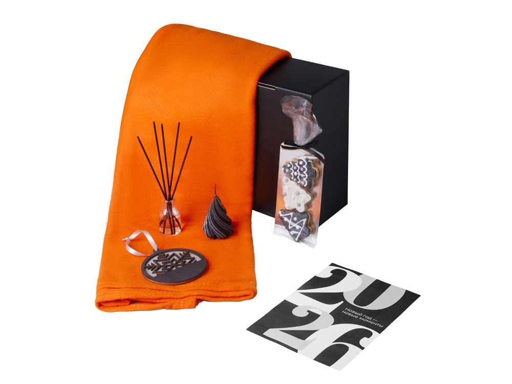 Подарочный набор с пледом, свечой и диффузором, оранжевый