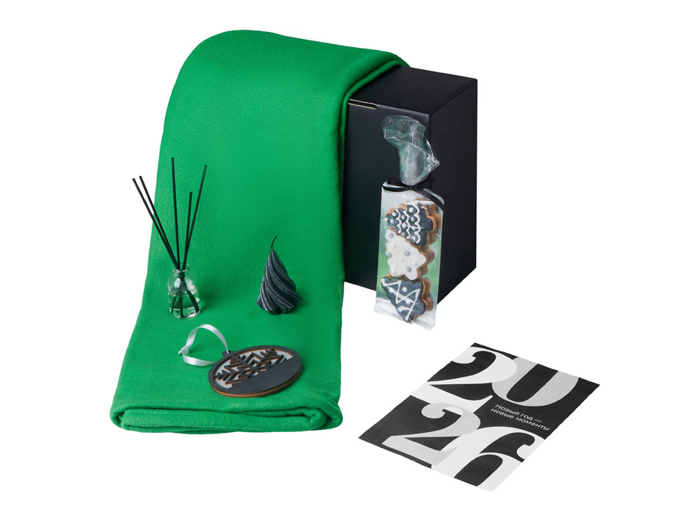 Подарочный набор с пледом, свечой и диффузором, зеленый