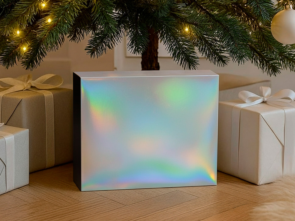 Подарочная коробка с голографическим шубером без печати Aurora, XL, 300х235х105 мм.