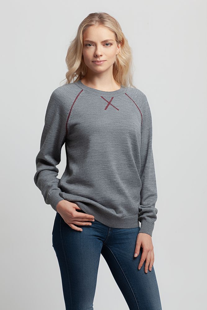 Джемпер Stitch с контрастной отделкой, серый с бордовым, размер XL