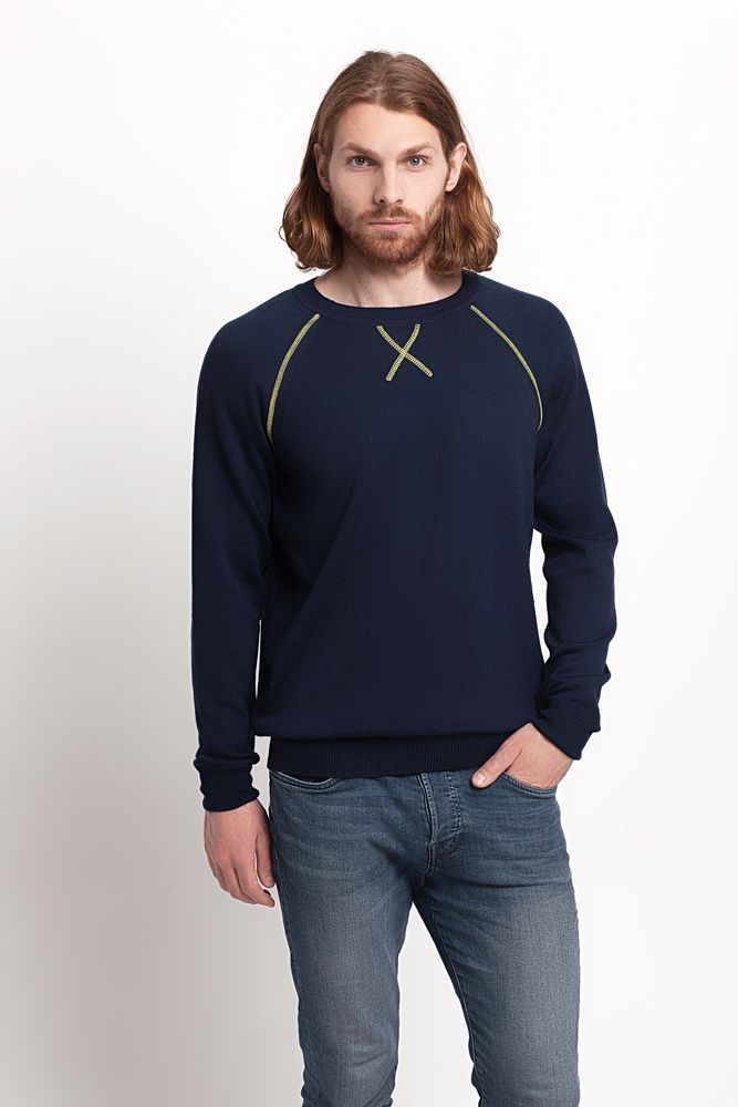 Джемпер Stitch с контрастной отделкой, синий с зеленым, размер M