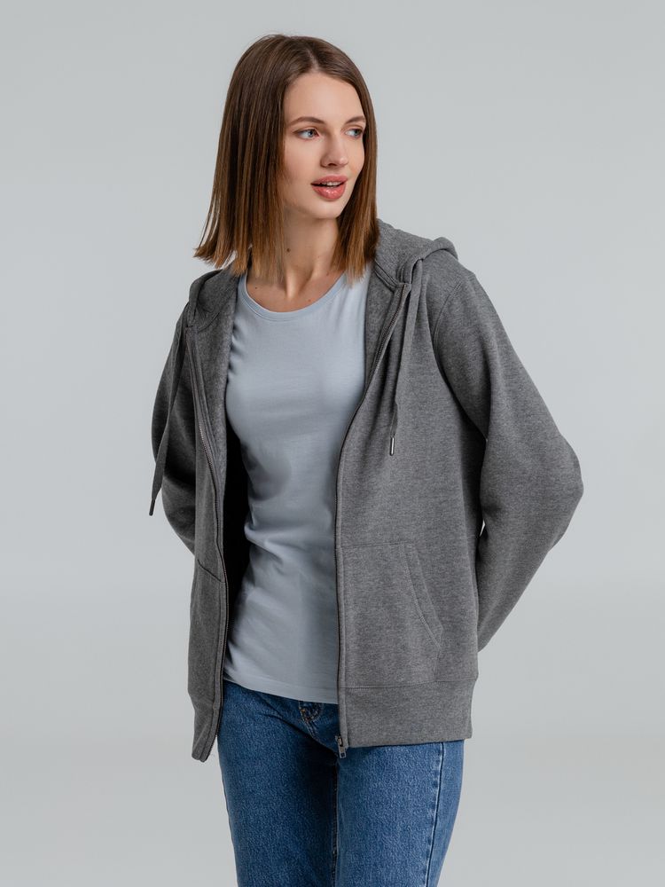 Толстовка на молнии с капюшоном унисекс King, темно-серый меланж, размер XS