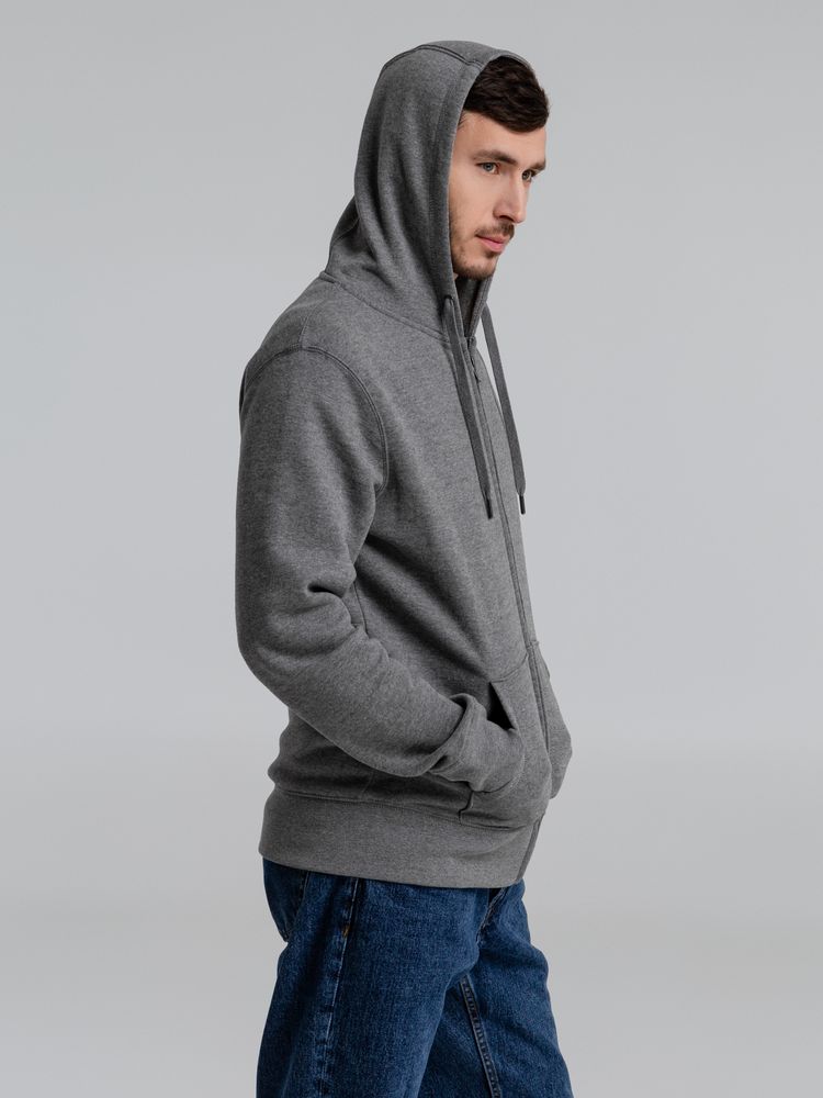 Толстовка на молнии с капюшоном унисекс King, темно-серый меланж, размер M