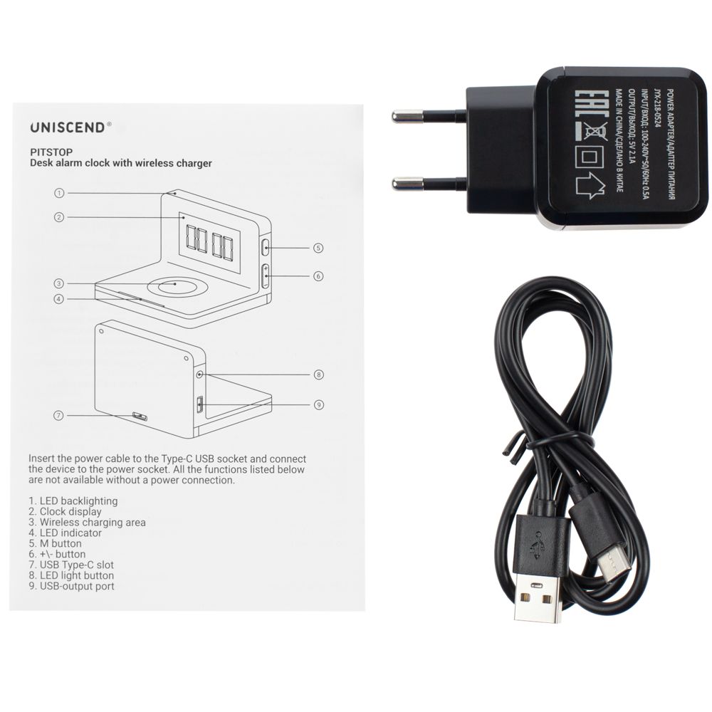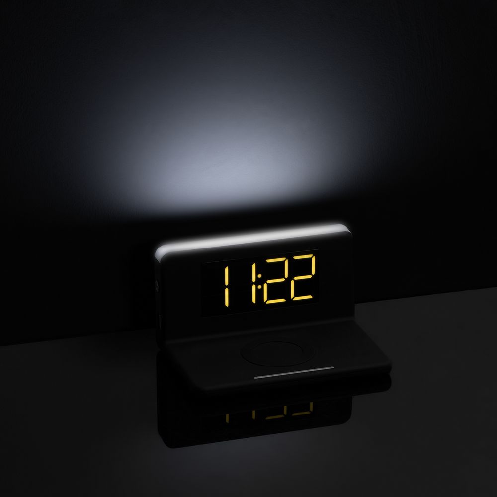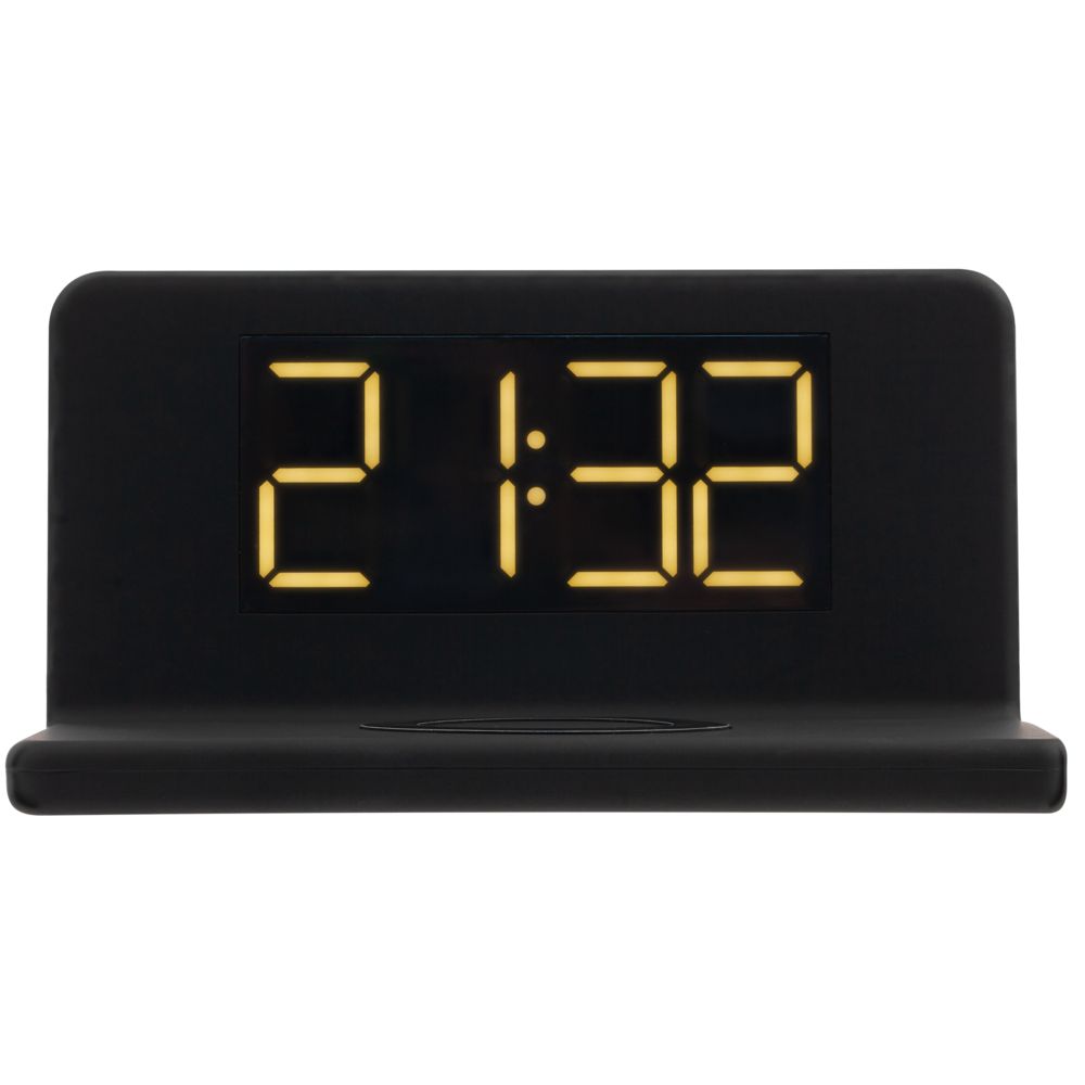 Часы настольные с беспроводным зарядным устройством Pitstop, черные
